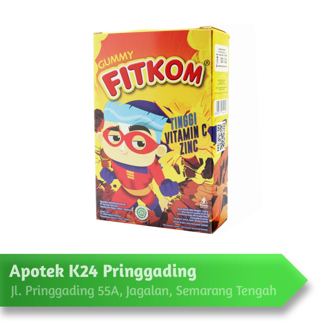Fitkom gummy vit c & zinc dengan tinggi vitamin c dan zinc membantu jaga daya tahan tubuh anak setiap hari dan mendukung tumbuh kembangnya lebih optimal... Fitkom gummy vitamin c and zinc merupakan suplemen yang berkhasiat untuk menjaga daya tahan tubuh anak, dengan cara memenuhi kebutuhan vitamin dan mineral. Vitamin c yang terkandung dalam suplemen ini berfungsi untuk memelihara daya tahan tubuh dan membantu memulihkan kondisi tubuh anak setelah sakit.